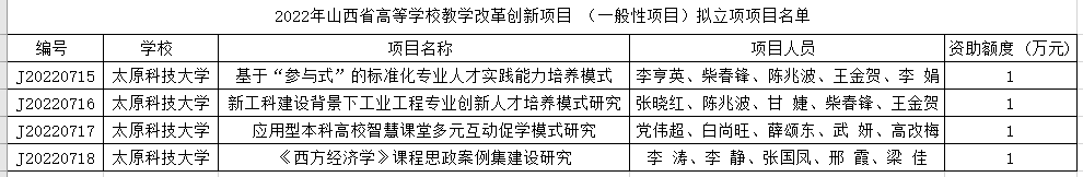 近日,山西省教育厅公布了2022年度山西省高等教育教学改革创新项目立项名单,beat365官网李亨英、张晓红、党伟超和李涛等四位教师负责申报的四项项目获批省级一般项目立项。